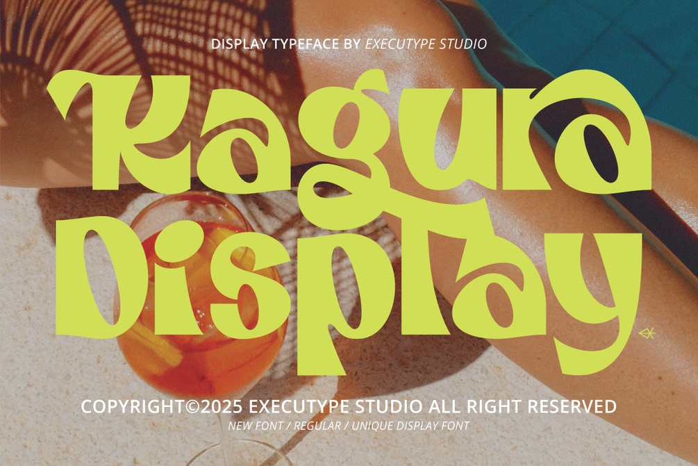 Kagura is an Unique Display Font — a highly stylized typeface with over the top psychedelic vibes. One of a kind, certainly not the kind of typeface you see everyday. Utterly unique. A good choice for a bold soul.